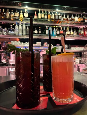 Die in buntes Licht getauchte Lounge bietet eine große Auswahl an Shishas und Cocktails in relaxtem Ambiente.