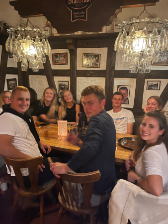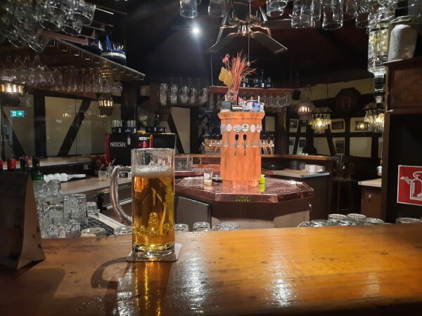 Bei uns gibt es 12 Sorten Bier vom Fass und dazu servieren wir deutsche Gerichte und Pizza