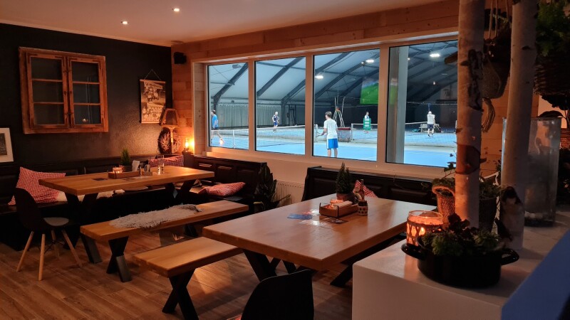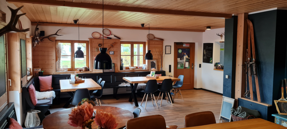 55 Sitzplätze, zwei 65 ZOLL 4K Bildschirme, Sorroundsoundsystem und gemütliches Alm-Flair.