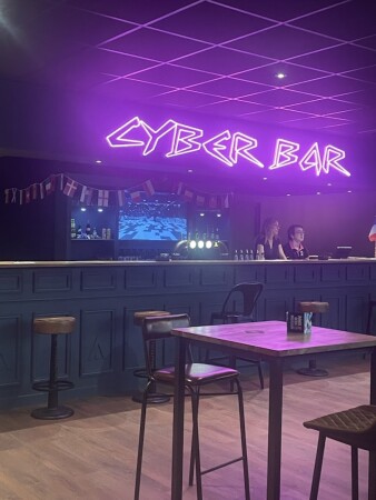 Salle de 500m² où l'on pratique l'e-sport en Réalité Virtuelle. Bar et snacking