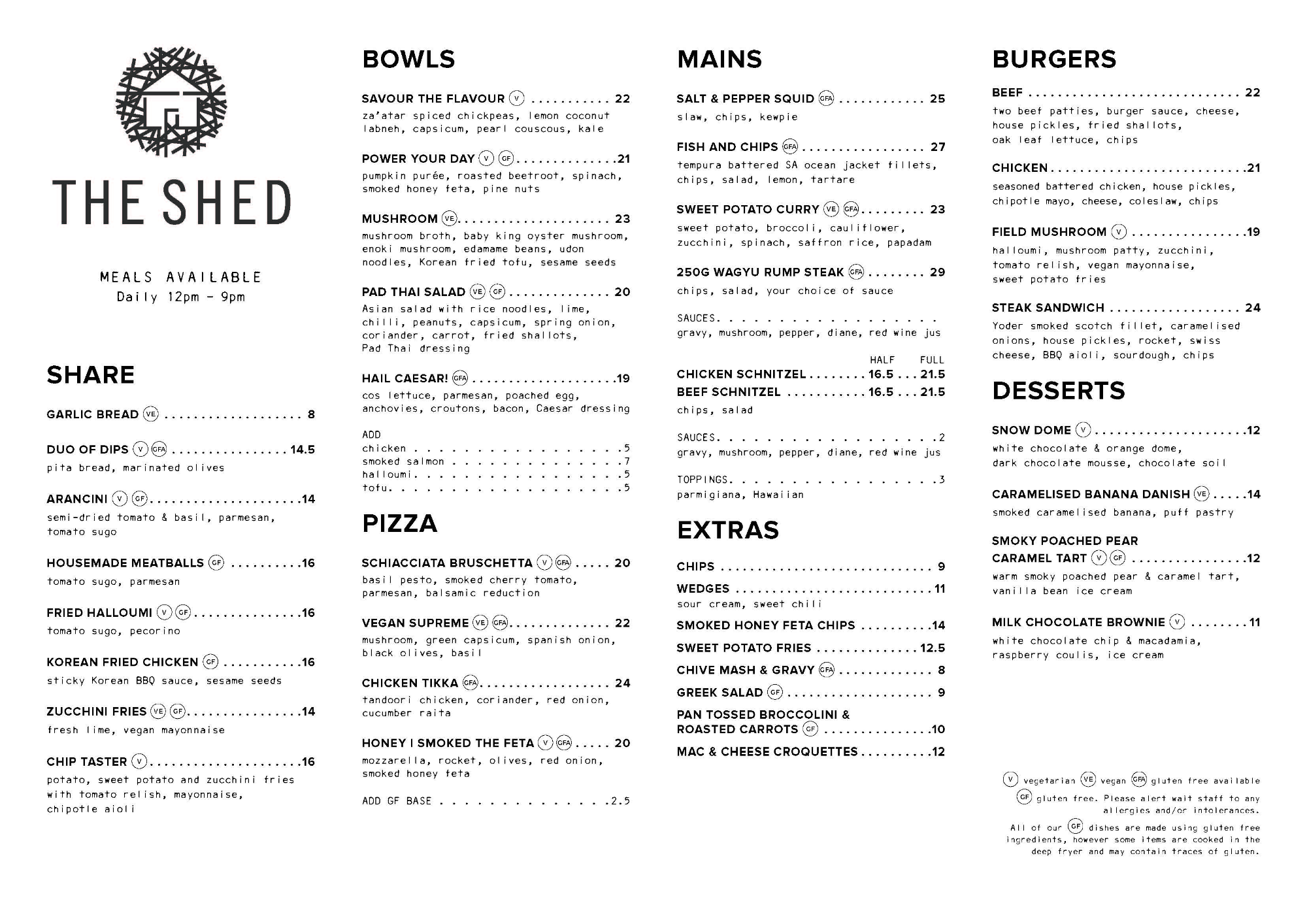 The Shed's laidback atmosphere is the perfect place to gather a few mates together, watch the footy or have a punt. The Shed has an extensive beverage range and delicous menu. You'll find all your favourite pub classics as well as a broad selection of moreish snacks and shared items. The Shed also features a pool table, Nightlife Crowd DJ and private beer garden. If you are organising a get together or planning something low key the Shed might just be the perfect place. Areas and tables are available to book. Opening Hours Sunday - Thursday 12pm - Late Saturday 10am - Late