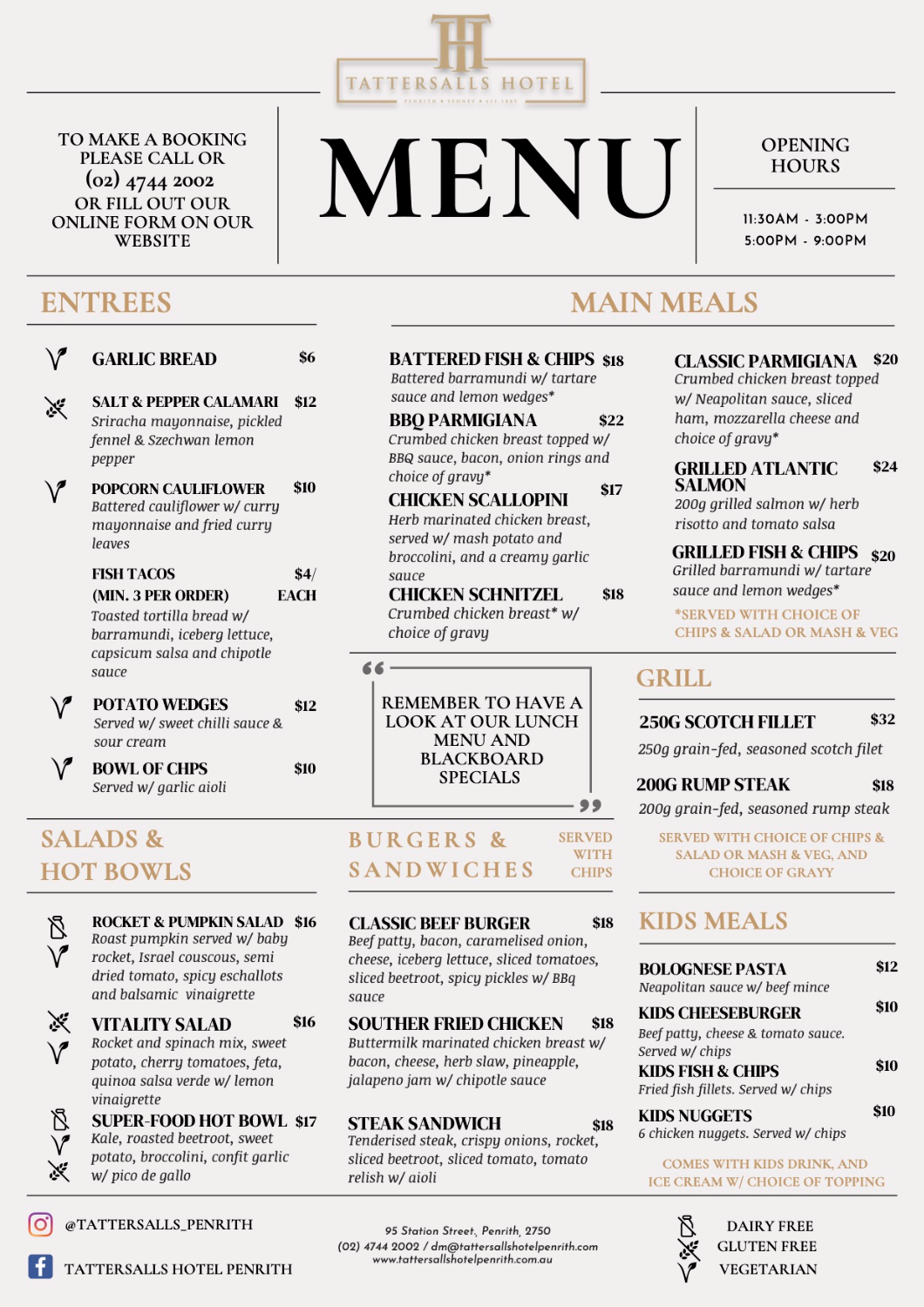 Suburban gastro pub located in the heart of Penrith. With a hearty bistro menu, offering a delicious variety of foods and flavours that will tantalise the taste buds of everyone who wines and dines with us! Catch all the sports action live & loud from the Sports Bar and expect the tap beer listing to tick everyone’s box