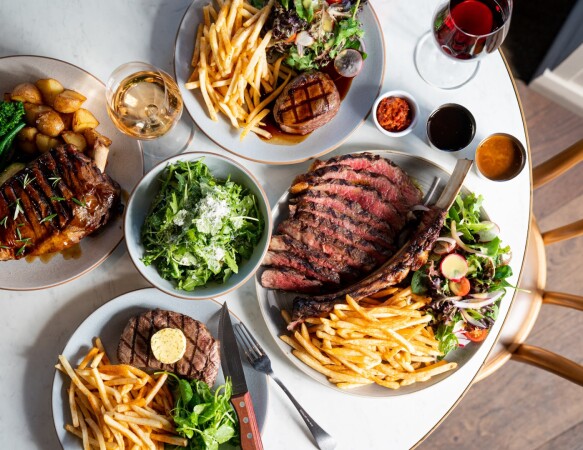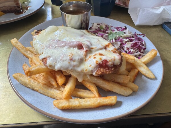 Burgers, steak mains & other classic fare offered in a large, old-fashioned dining space.