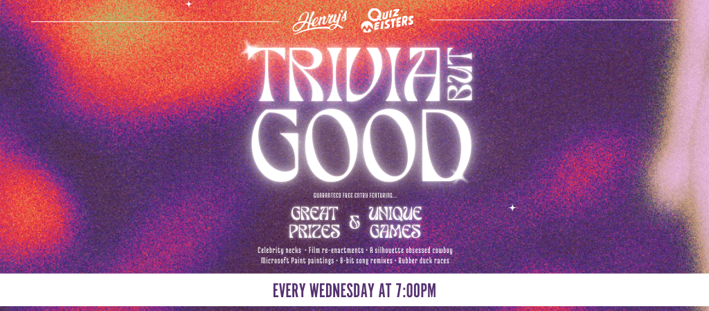 THE PUB IN A CLUB Henry's is the perfect place to watch all the major sports events (NRL South Sydney Rabbitohs, NFL and more) live on our 110″ projector screen and HD plasmas. What's On at Henry's: -Wednesday: Quiz Meisters trivia from 7pm -Thursday: $18 pizza $6 beer $1 beer -Friday: 49% off drinks (4-6PM), 50ft Putt from 4pm, live bands from 8pm -Saturday: 49% off drinks (12-2PM) -Sunday: Breko's Music Bingo from 6:30pm