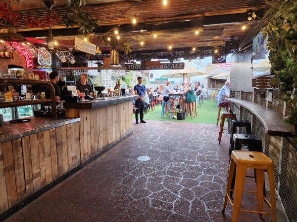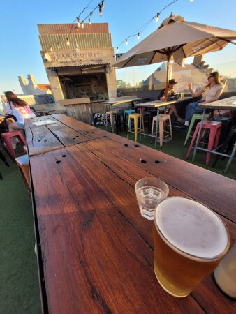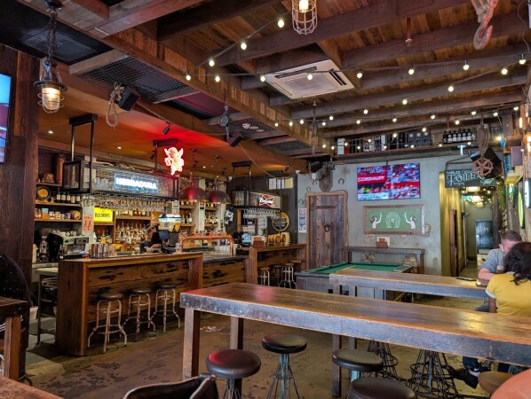 Fun, sprawling bar with 3 floors, including a rooftop terrace, for burgers, steaks and cocktails.