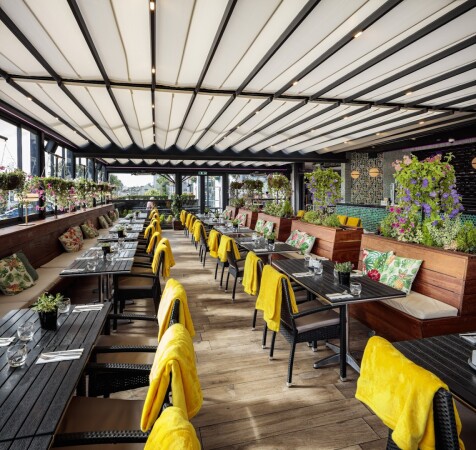 A contempory style bar and outdoor terrace providing a mouthwatering menu including Stone Baked Pizzas, Hereford Beef Burgers, healthy salad options and an extensive drinks menu to wash it all down.
