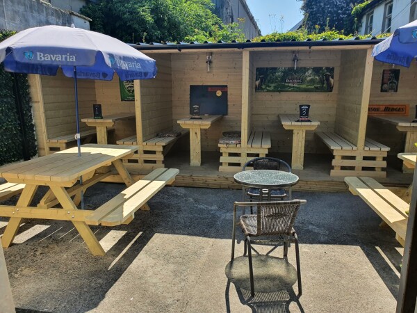 Local bar with heated beer garden and private private pods. Games room with pool darts and jukebox. Showing all live sports. Also off licence