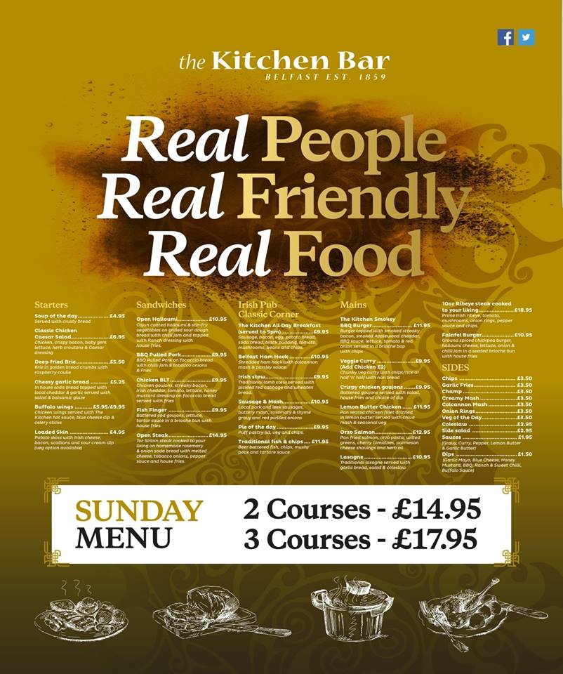 REAL ALE REAL FOOD REAL FRIENDLY The Kitchen is a Vibrant bar at Victoria Square in Belfast city center! Call in for a meal or a pint and see for yourself what the fuss is all about Live Entertainment nightly!! All sports shown on widescreens