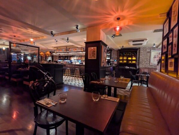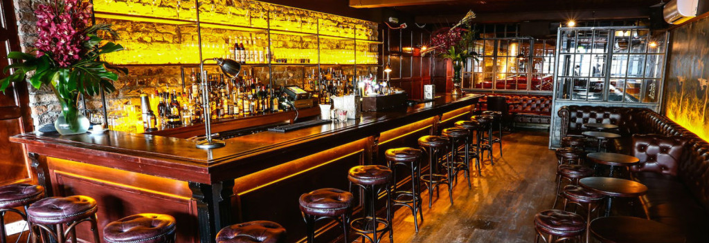 A cool modern bar with a Far East theme showing major rugby events including the Six Nations.
