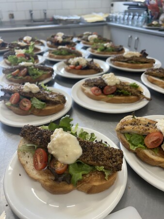 Serves food