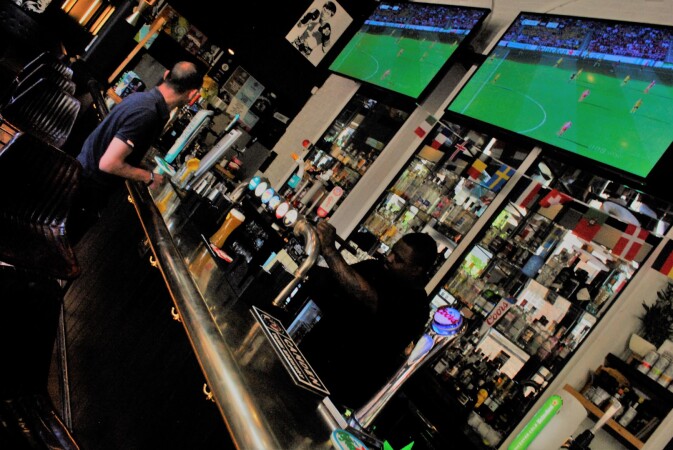 British & American pub classics pair with signature cocktails in a stylish sports bar.